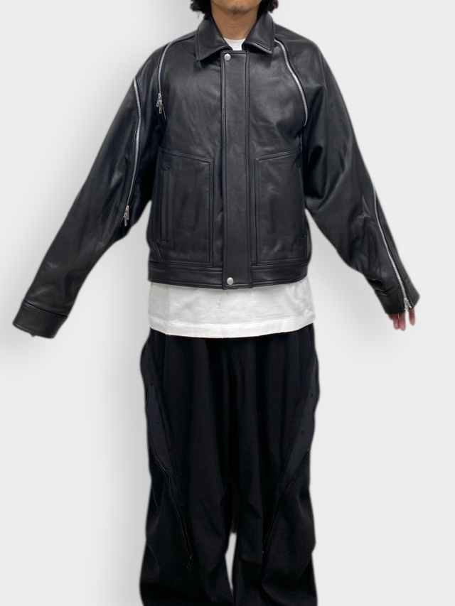 26SS09BL246 FILLETED ZIP LEATHER JACKET