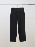 Unsatisfied with typical one wash denim, we aimed for a deep indigo with character right from the start, beginning with the weaving of our original selvedge denim. Rather than just washing it, we layered a brown dye over the deep indigo, then added another color on top. By sparing no effort even for a one-wash, we crafted a rich, deep black with character. The silhouette is a straight cut with a moderate width. #03 aims for a universally flattering balance, offering ease around the hips while tapering to the hem. We revisited our long established denim recipe, meticulously adjusting each dimension down to the millimeter to match the collection. This pair creates an exceptionally beautiful standing posture, elevating the entire look. We hope many will wear it. Made in Japan.