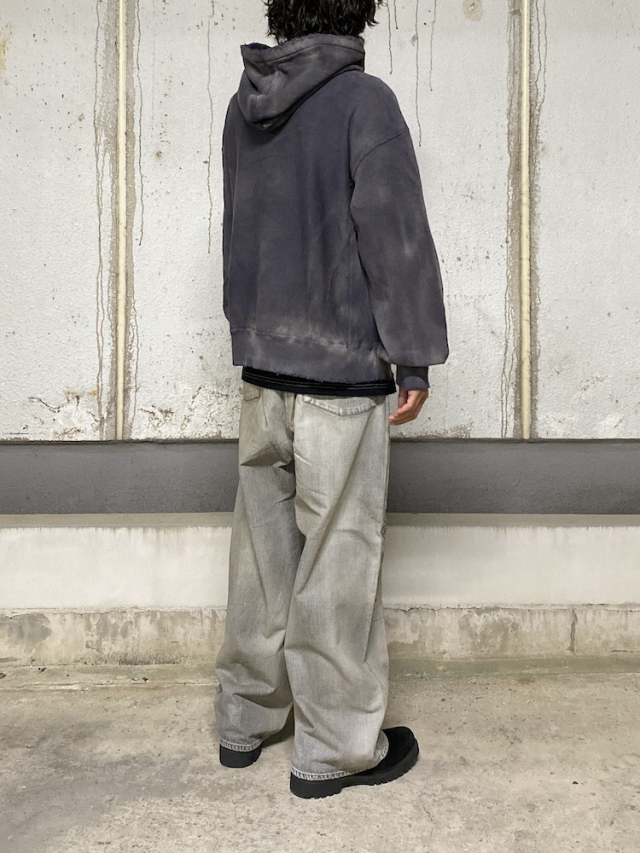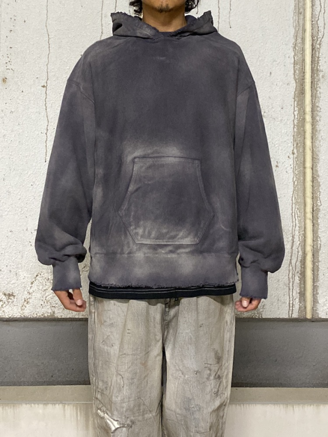A beautiful sweatshirt hoodie featuring stunning gradients born from our unique dyeing techniques and processing. Each piece is one of a kind, showcasing randomly appearing color patterns. Gradients that spread like water. A masterpiece combining beauty and impact. Inspired by 1950s~1960s vintage pieces, it uses a fabric with excellent elasticity and a soft feel against the skin. Enjoy watching it develop character with wear. While a staple hoodie we've continuously produced, we've meticulously updated its dimensions over time to suit the era. We hope you'll enjoy its deep mood and beautiful silhouette while nurturing it to develop even more character. Made in Japan.