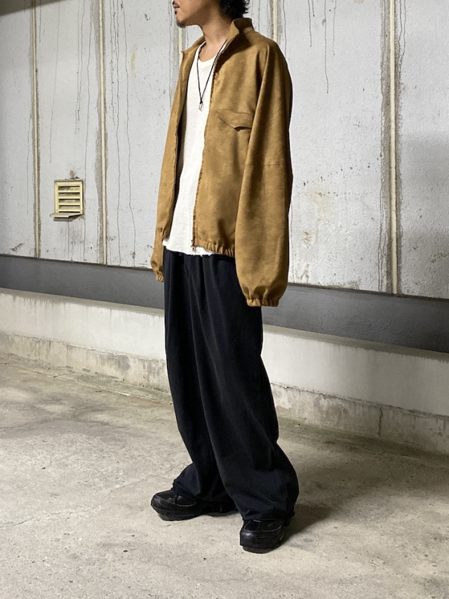This light blouson jacket has been continuously updated throughout the seasons while maintaining its classic design. In this latest version, vegan suede has been selected as the material to enhance lightness and usability. The pattern has been carefully researched over many years, down to the flow and drape of the sleeves. By applying kimono-making techniques to the pattern, the jacket achieves excellent drape and flow, with the fine texture of the vegan suede creating subtle shadows. It can be worn lightly like a shirt in the fall and as an outer layer when the weather turns colder. We recommend wearing it with the zip front fully open and the stand-up collar folded down, reminiscent of a skipper's jacket. Enjoy the beauty of the fabric's movement in various styling options.MADE IN JAPAN