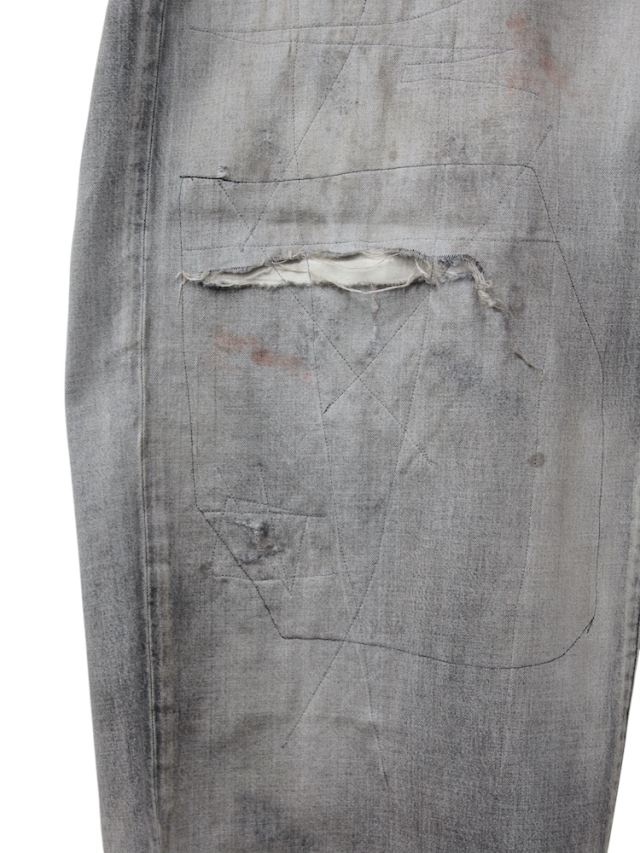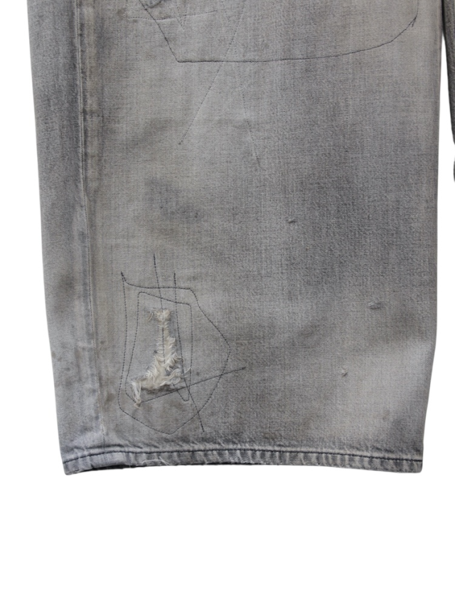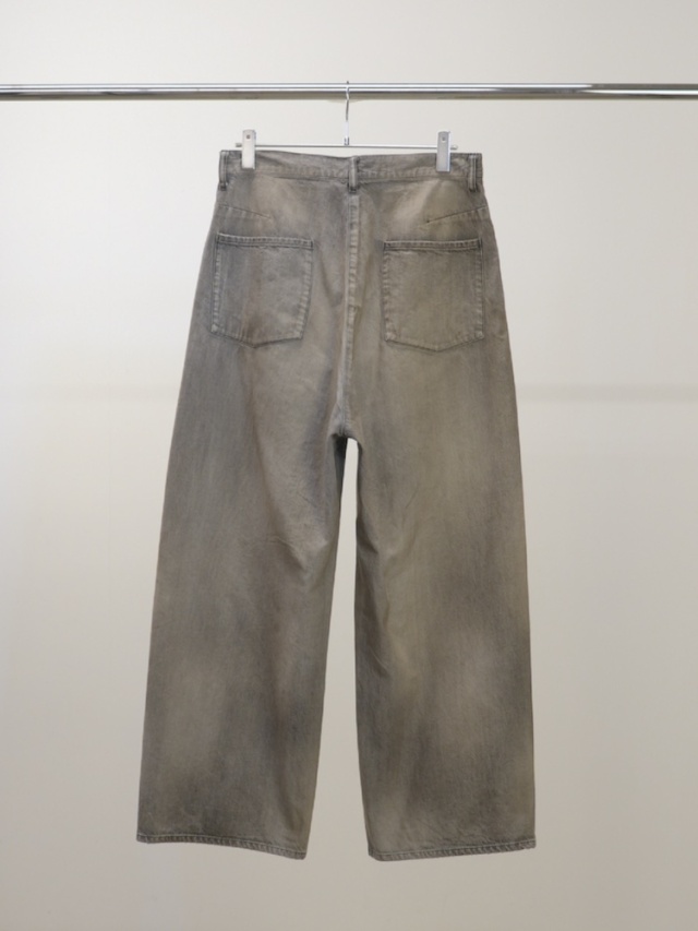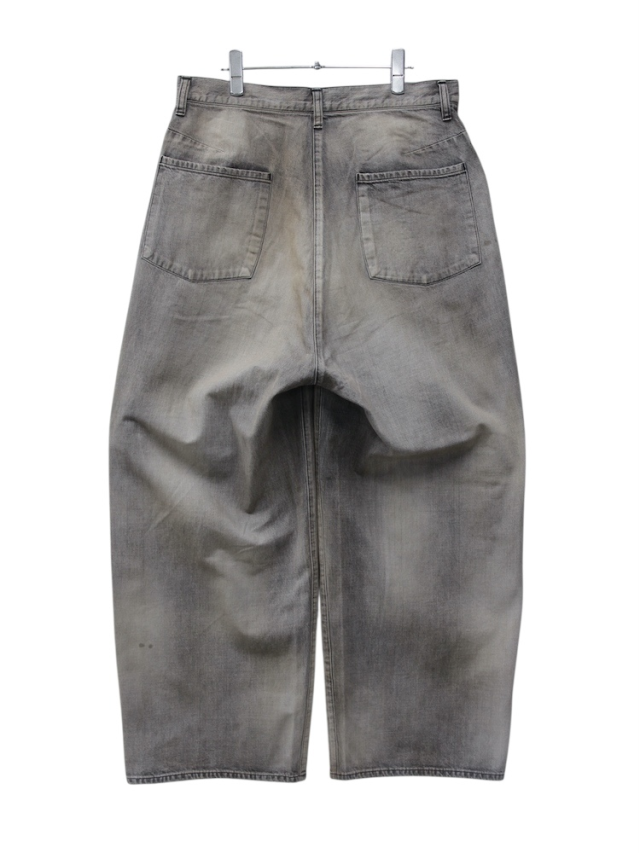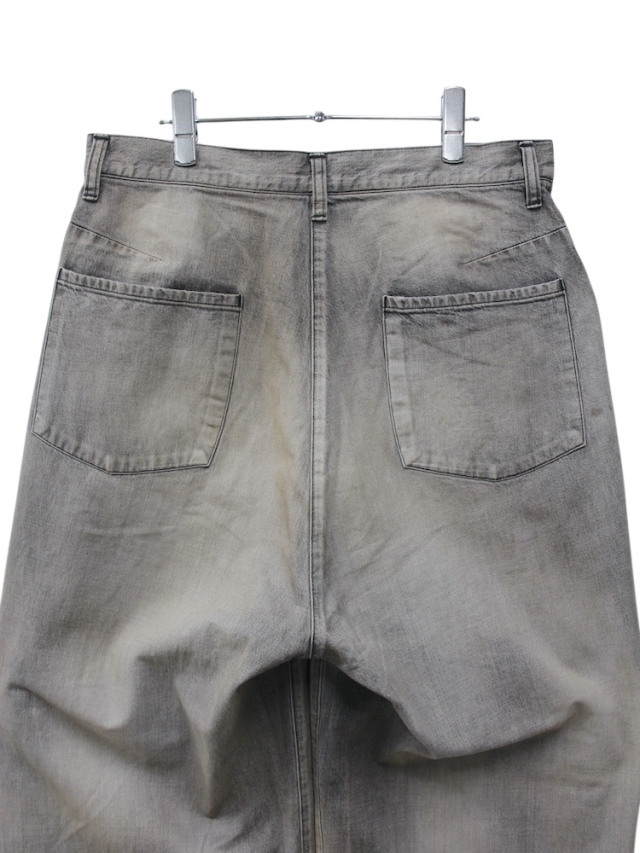 ANCELLMの核となるデニムパンツでは今作より全てにアップデートを加えております。#04は迫力のある太さで裾まで落とした美しいワイドストレートシルエット。ミリ単位でパターンを整えながら上半身とのバランスやシューズへの乗り方、全身としての見え方を細かく追い求めました。寸法上は大きな数値ですが着用時には綺麗な収まりを見せることで立ち姿が立体として非常に美しく映ります。AGING 01の色作りでは色を落として設定したベースカラーに対し淡色・中色・濃色それぞれのレイヤーで色気を整えるよう独自調合の色を載せることでブランドの象徴となるムードを生み出しております。リペア加工では熟練の職人が一点一点に手作業で当たり、各所に当て布を貼りミシンで叩いております。リペア部分を切り取って見るとアートのように映るよう一般的なやり方ではなく縦横無尽にステッチを走らせ汚しを散らせることでムードと迫力を加えました。洗練としたグラデーションと荒々しい加工が美しいアンバランスとして共存するよう時間をかけて試行錯誤を繰り返した力作です。企画から生産まで本当に苦労が絶えませんでした。是非、お試しください。日本製。