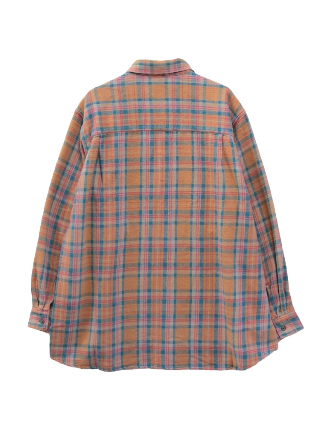 This work shirt follows the relaxed fit of American flannel shirts from the 1980s. We aimed for a color balance that felt familiar yet novel, weaving an original heavy flannel from a carefully curated palette that broadens combination possibilities. We tempered the intensity of the primary colors with a pronounced fade, then added two more hues to balance the saturation. The check pattern, meticulously adjusted down to the size of the squares, took considerable time to achieve. The fabric boasts a substantial thickness and weight perfect for fall and winter, delivering cotton's characteristic soft, smooth feel against the skin alongside the rugged character inherent to workwear. In the final finishing stage, artisans meticulously hand-process each piece individually, imparting a mood reminiscent of years of wear. It possesses the look of vintage clothing without actually being vintage. A mood that infuses old-world charm with a fresh, innovative spirit. We invite you to experience it for yourself. Made in Japan.