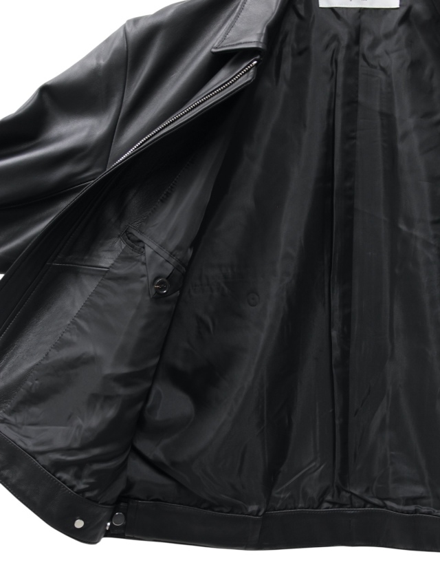 balから久々のリリースとなるレザージャケット。滑らかで馴染みの良い羊革を使用したゆったり目のシルエット。シングルライダースをベースに動き易さを考慮したテクニカルなパターンと切り替え。裾内側のストラップとスナップボタンでシルエット調節が可能。袖裾内側はリブ仕様。表からファスナーの見えないハンドポケット。IDEAL製ブライトシルバーファスナーを使用。
