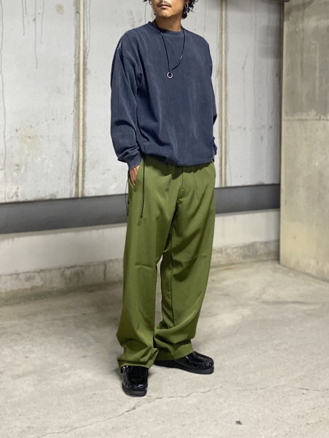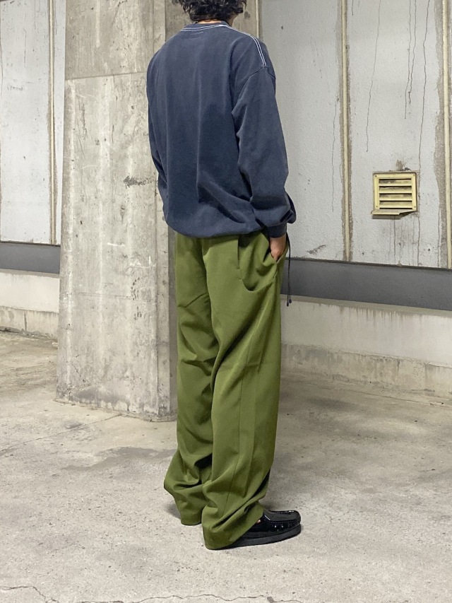 ワイドストレートシルエットの6ポケットカーゴパンツ。ストレッチジャージー素材。カーブ切り替えに沿ったハンドポケットとサイドポケット。