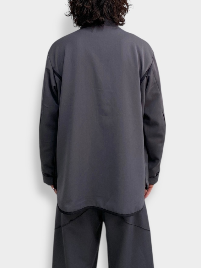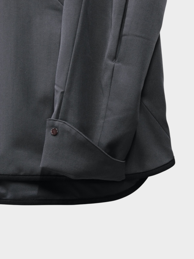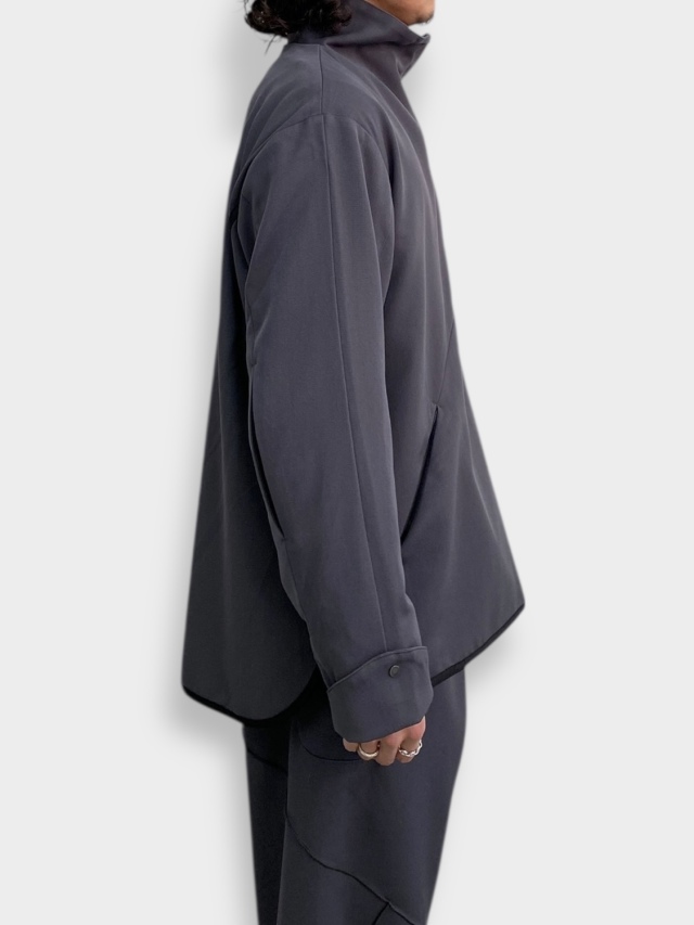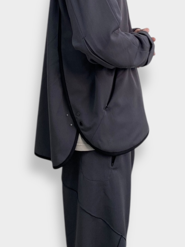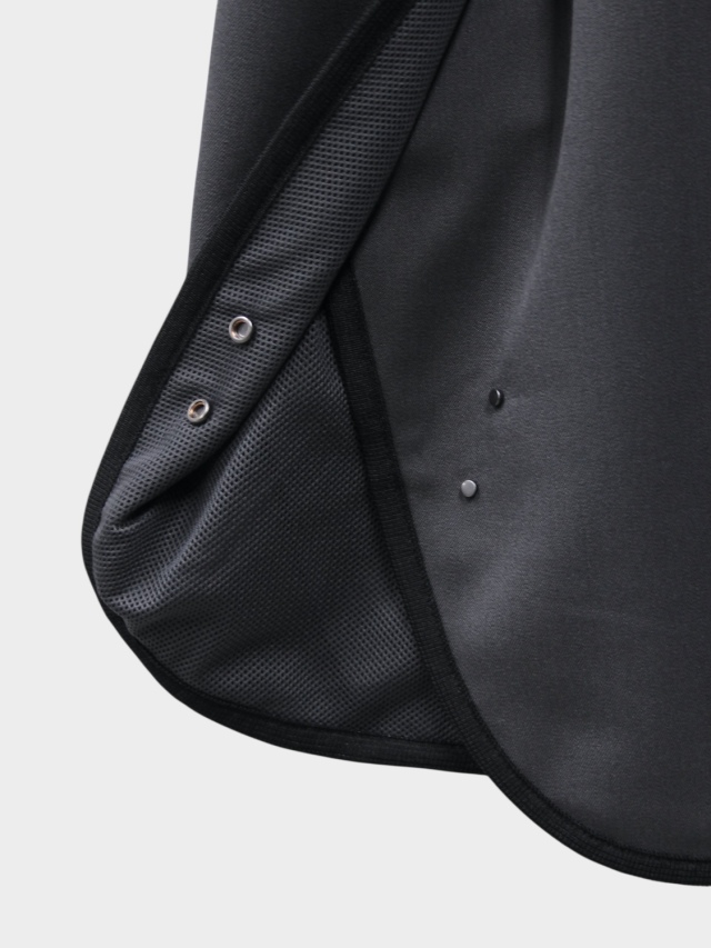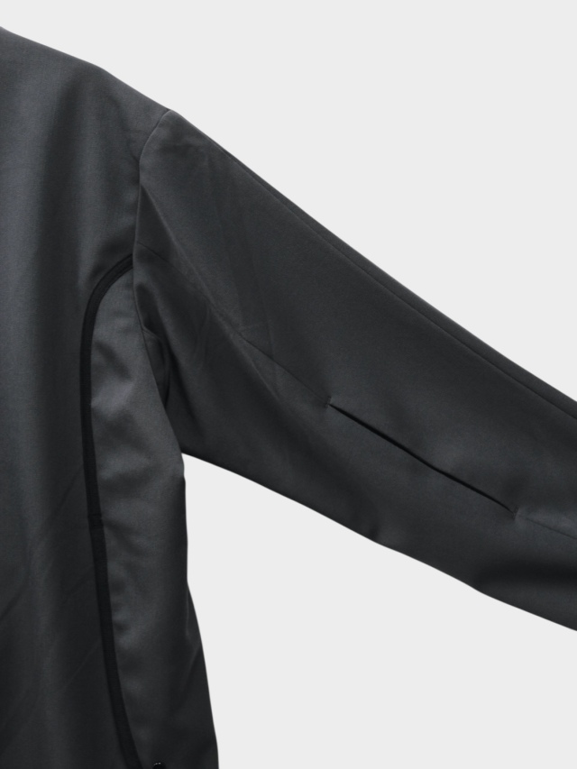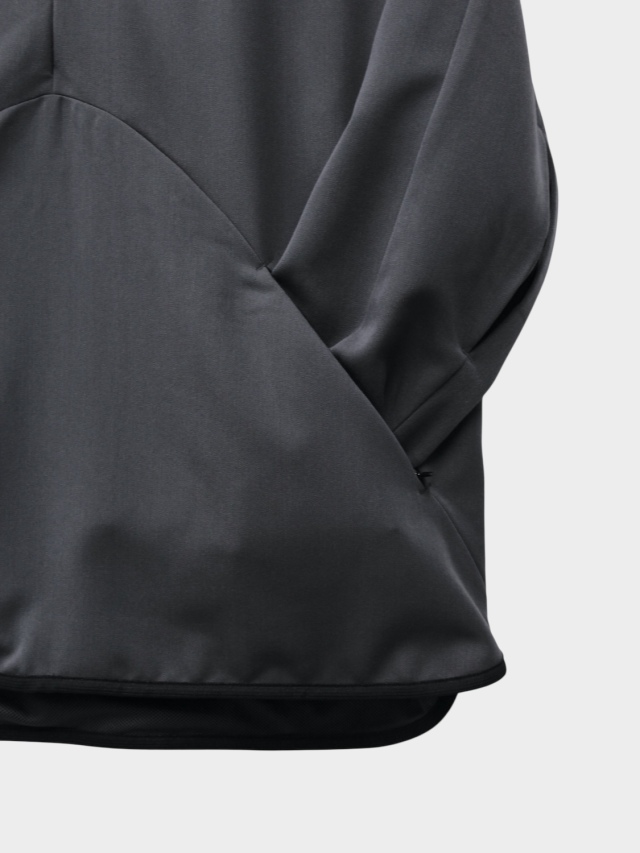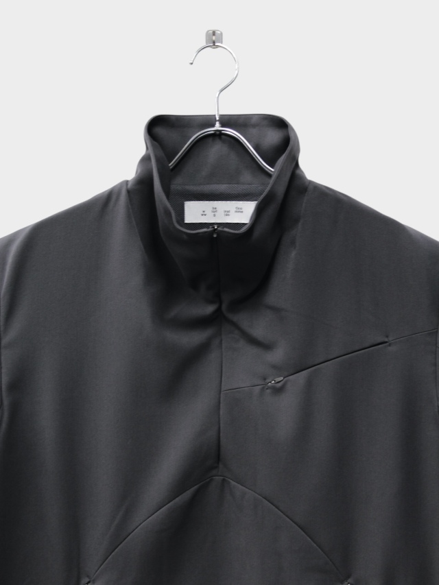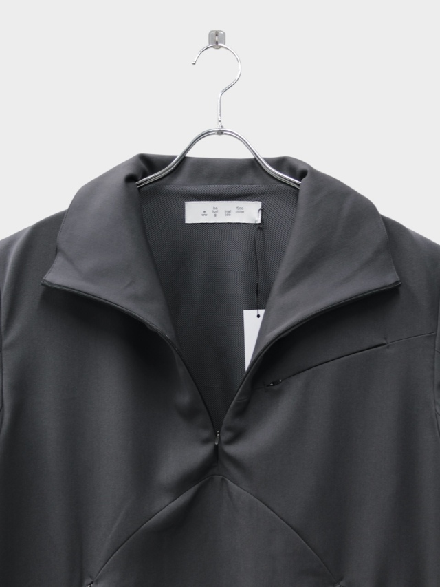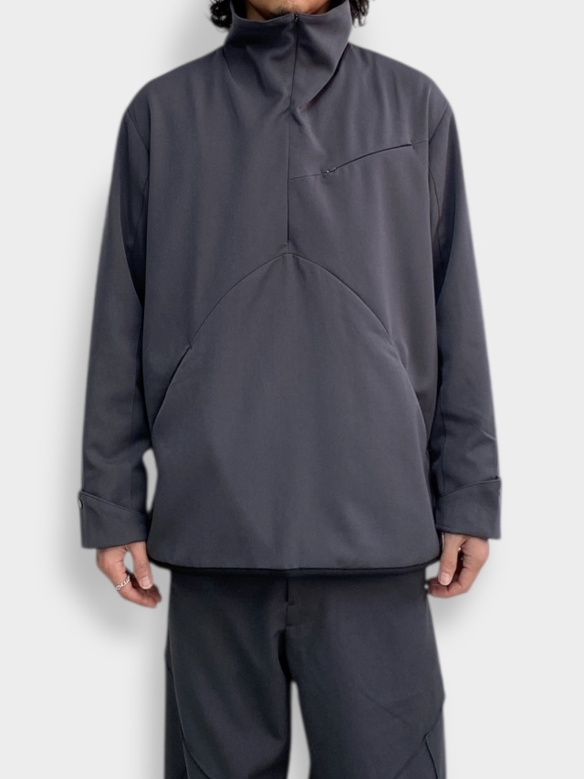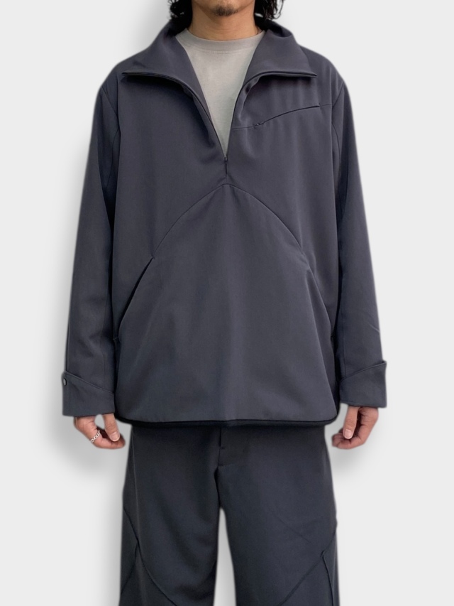 知る人ぞ知る匿名デザイナーii_iiiiiiii氏とのコラボレーション。マイクロジップを用いたテクニカルなパターンが特徴的なハーフジッププルオーバー。混紡化繊によるウールライクながら落ち感のある肌当たりの優しい生地を使用。サイドはスナップボタン開閉の深いスリット。肘部分にプリーツをあしらい可動域を確保。裏地はメッシュでサラリとした着心地。テック感がありながらカジュアルに使えるユーティリティーな一着です。同シリーズのトラウザーズとセットアップも可能。