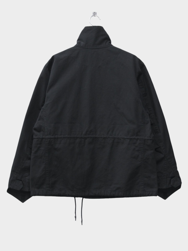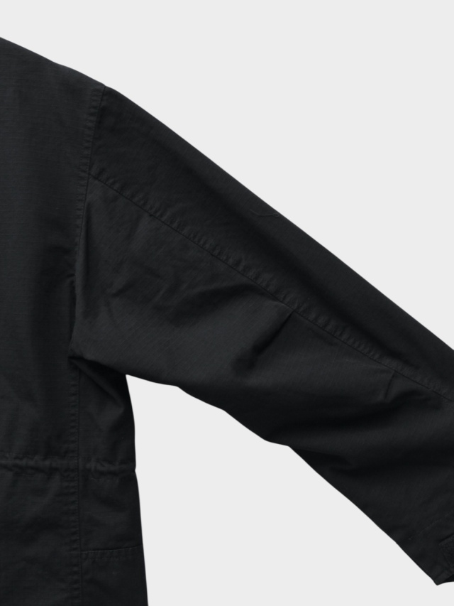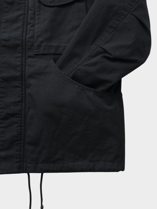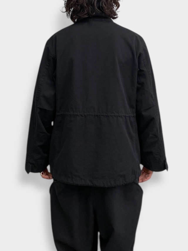 M-65フィールドジャケットをベースに大きなカーブポケットを左右に配したbalらしいユーティリティーな一着。耐久性に優れたリップストップコットン生地に総裏コットン。IDEAL製ダブルジップ。スナップボタンによる比翼仕立て。ウェスト、裾にドローコードを配しておりシルエットの調節が可能。製品後のウォッシュ加工により雰囲気ある仕上がりとなっております。
