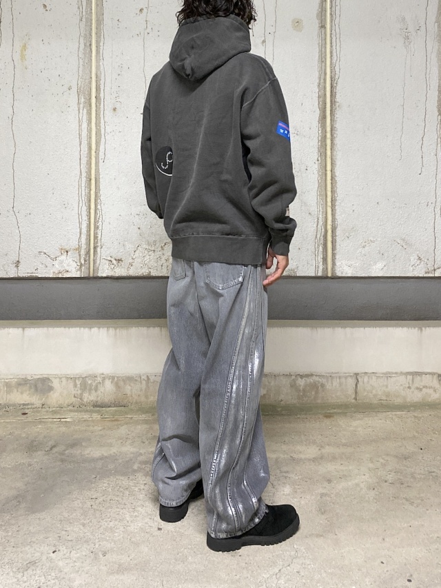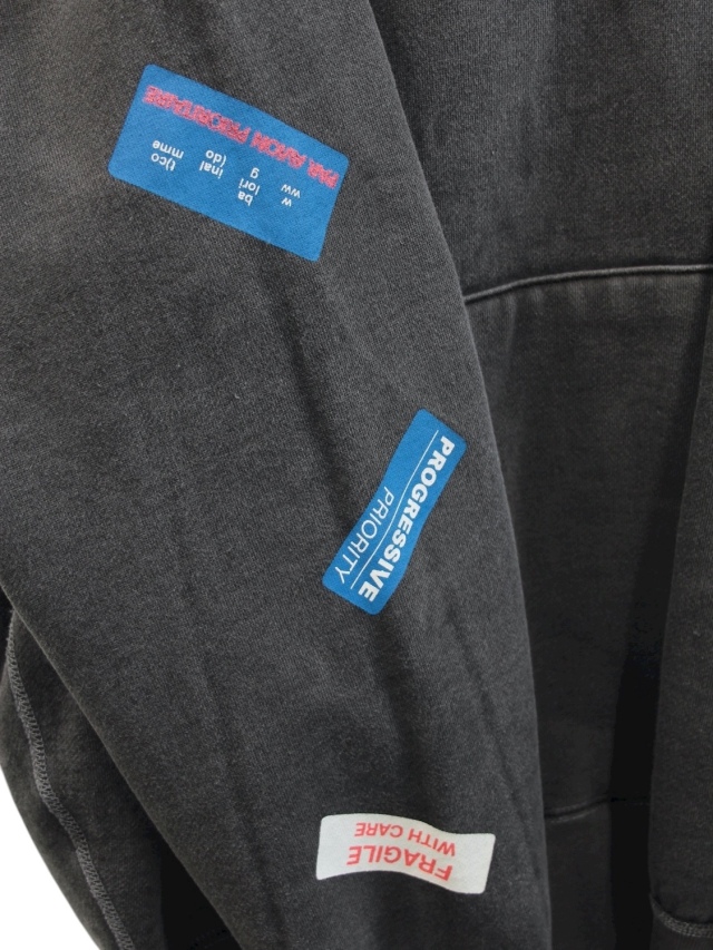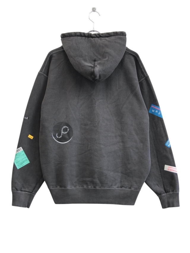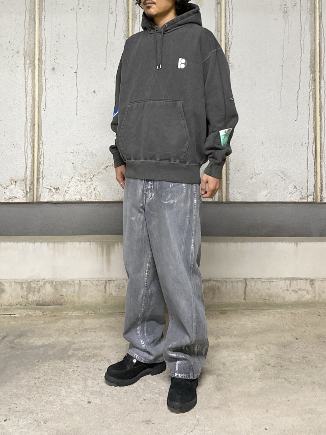 定番アイテムとしてシーズン毎にグラフィックを更新して展開されるヘビーオンスの裏起毛フーディー。胸、背面、両袖にバランス良く配されたプリントがアクセント。身幅、肩幅ともにゆとりを持たせたオーバーサイズ。