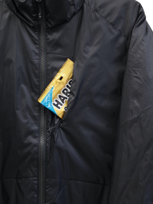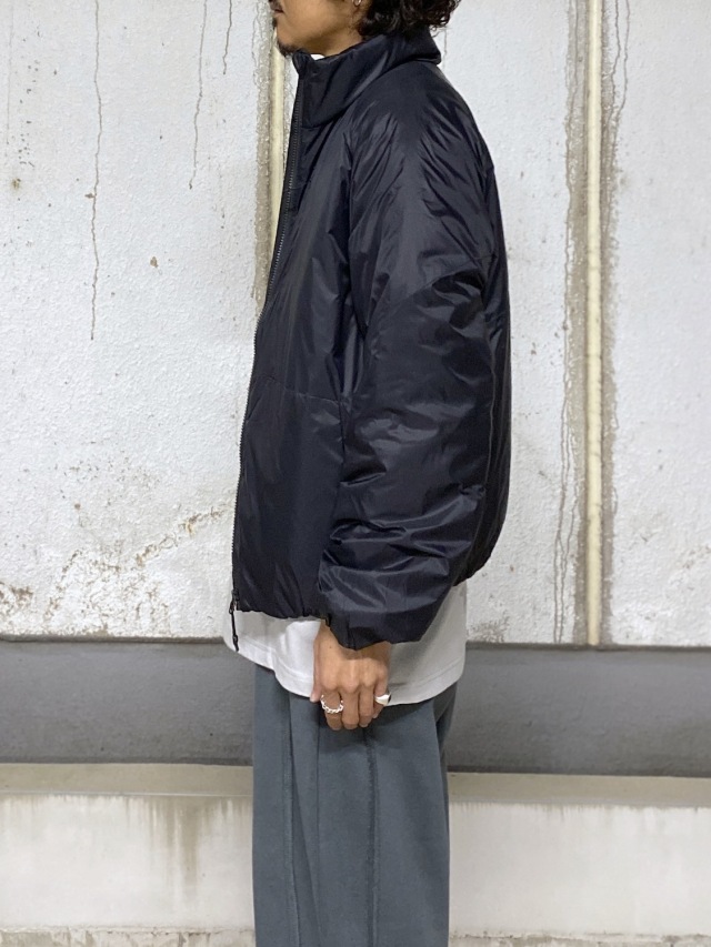 日本初のダウンブランドTAIONとコラボレーションしたダウンブルゾン。表側にステッチの出ない仕様。スタンドカラー。チェストジップポケット、ハンドポケット。TAIONオリジナルナイロン採用。800フィルパワー。内側両サイドにジップポケット。内側両裾部分にスピンドル。収納用のナイロン製巾着が付属。