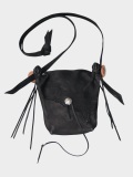 This deerskin pouch was crafted with 1990s American casual fashion culture in mind. It retains the rough, earthy feel that evokes the era's atmosphere, balanced by the high quality of the material. The fasteners and buttons feature authentic concho buttons made by hammering and shaping early 1900s American cent coins. This adds a unique character and weight not found in mass-produced items, resulting in a piece with a strong presence as a tool. As shown in the photo, it offers sufficient capacity to hold a smartphone, compact wallet, or case. Made in Japan.