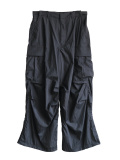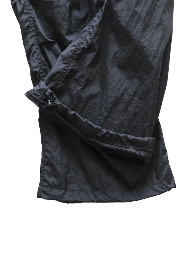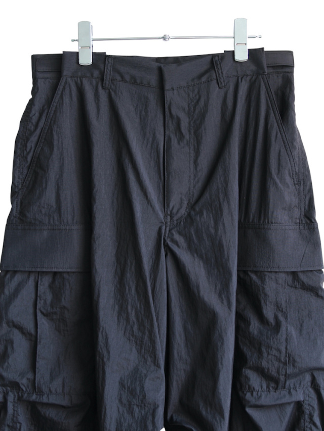 定番でリリースしているフリーダムパンツをアップグレードしカーゴパンツタイプを追加。撥水機能のあるワッシャーナイロン生地を使用したワイドストレートシルエットのカーゴパンツ。生地には、オリジナルで染めたワッシャーナイロンを使用。裏地部分は吸水性、速乾性に優れ、静電気の発生を抑制する制電糸を使用したドライタッチが特徴の目の細かいメッシュ生地を採用。総裏仕様となっています。ウエスト部分にはベルトアジャスターを配置し、ボタンを押しながらスライドさせる事でウエストを最大10cm調節可能。裾部分にはアジャスター付きドローコードを配置しシルエット変更が可能。
