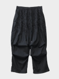 Our signature SNOW CAMO PANTS. We've added pocket lining and belt loops features not originally included to adapt these snow camo pants for urban wear. This season features a paisley embroidery pattern running from the upper waist to the lower waist. The outer fabric uses a water-repellent nylon material with a washed finish. For a comfortable feel against the skin, the lining employs a fine mesh fabric with a dry touch. This fabric combines moisture absorption and quick-drying properties with an anti-static yarn to reduce static electricity. Easy pant construction. Spindle placement. A drawcord is also placed at the hem to allow for silhouette adjustment.