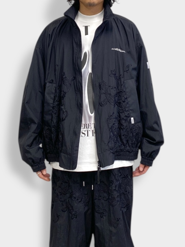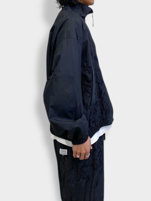定番でリリースしているFAT JAMPER。シルエットは非常に大きく取った身幅、肩幅、アームホールに対しショート丈に設定したボックスシルエット。今季はフロント中央から裾にかけてペイズリー刺繍を配置。胸元にはブランドロゴ刺繍をを配置。表地は、ワッシャー加工を施した撥水性に優れたナイロン素材を使用。裏地には、吸水性・速乾性に加え、静電気の発生を抑える制電糸を使用した、ドライタッチの細かいメッシュ素材を採用。裾部分にはアジャスター付きドローコードを配置し、シルエット変更が可能。