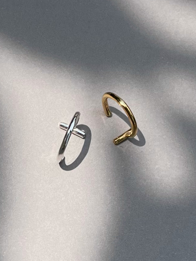 セプタム、ノストリル、リップにも対応したフープピアス型のマルチカフ。エッジの効いたアイテムながら、小振りでさりげないバランスが魅力です。