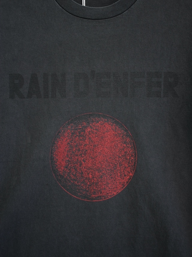 フロントにRAIN D'ENFERのプリントを配したピグメント加工のTシャツ。トレンド感を反映し過度なオーバーサイズを避けたボクシーシルエット。厚過ぎず軽すぎない7オンス天竺素材はドライタッチで軽い着心地。洗いを重ねることにより風合いを増す一枚です。