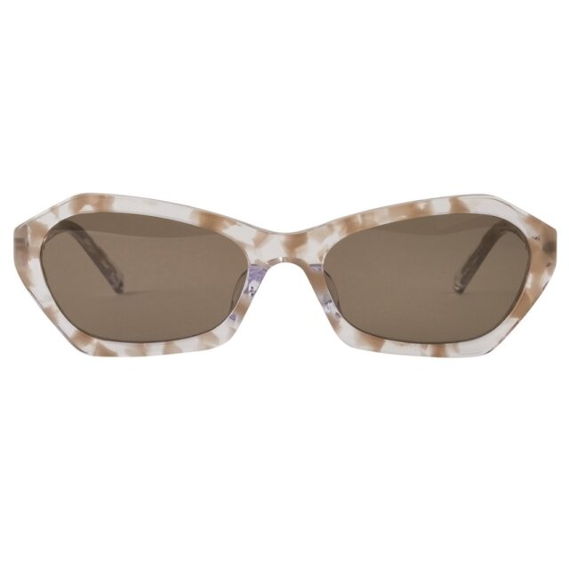 オーバルとスクエア両方のキャッチーな魅力を詰め込んだペンタゴンスタイルが特徴の"Kiedis"。鎧の切る位置もハイカーブに合わせてラウンドシェイプになっており、フレームのアウトラインの角を立てず、玉型の内側は丸くなっていることで、個性的ながらもタウンユースにも適した1本に仕上がっている。トレンディな形を誇張し過ぎないよう、バランスの取れたグレースケールの配色となっている。