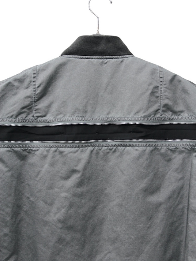 MA-1をベースにしたフライトブルゾン。ナイロンオックスに顔料プリントを施し、製品加工を行うことにより、石のような質感とパッカリングを表現しております。胸部分に初期のMA-1に見られるレザーのボックスタブを採用、内側にジップポケットを配しデザインのアクセントと実用性をプラス。ROTOLを象徴するディテールとなる背面から袖にかけて施されたジップによりシルエットを変化させることが可能です。袖口、裾にはリブを採用。製品加工のため、ダメージや個体差がございます。