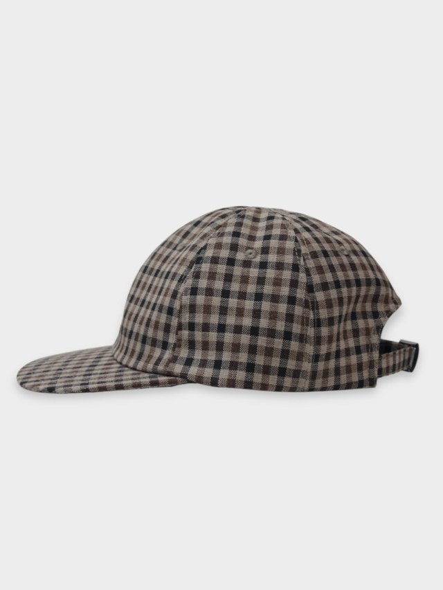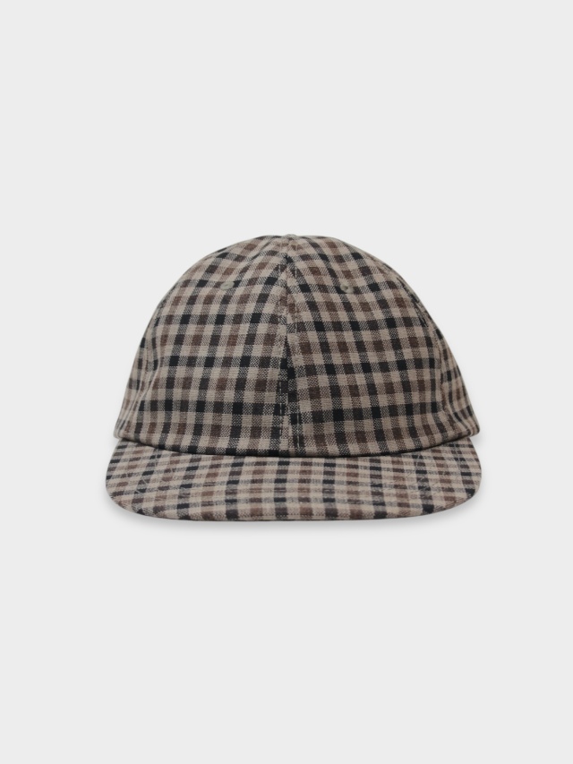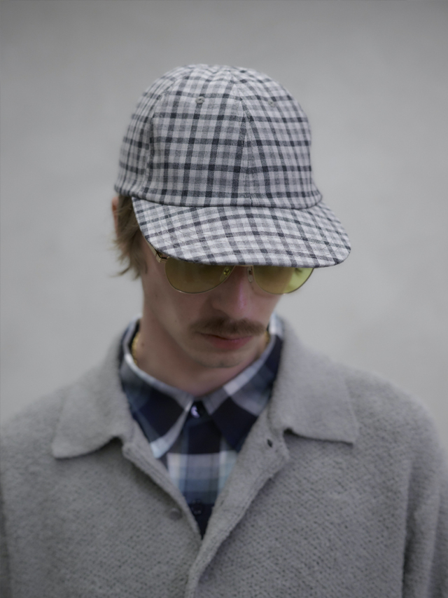 A shallow baseball cap with adjustable sizing via a back adjuster. The fabric is Fox Air (fabric code FS30ST) from the British company Fox Brothers, founded in 1772. Its characteristics include a crisp, plain weave and a dry-touch cool wool feel. The use of twisted yarn makes it resistant to wrinkles, lightweight, and convenient for both wearing and carrying. With a weight of 300-330g per square meter, this fabric is suitable for wear during spring, summer, and fall.